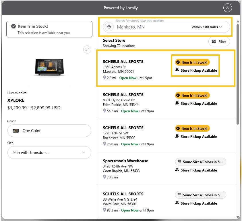 - After Selecting Check Local Availability you can enter in you location to check dealers with the item in stock, if available you can do Store Pickup when Available. Note: Because we sell primarily through distribution and boat builders, it is possible that not all stocking dealers names are made available to us.