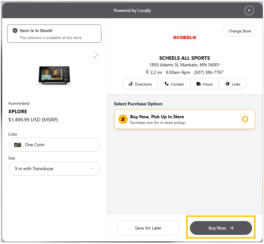 After Clicking Store Pickup Available you can click Buy Now to proceed with placing the order for pickup with the Dealer you selected.