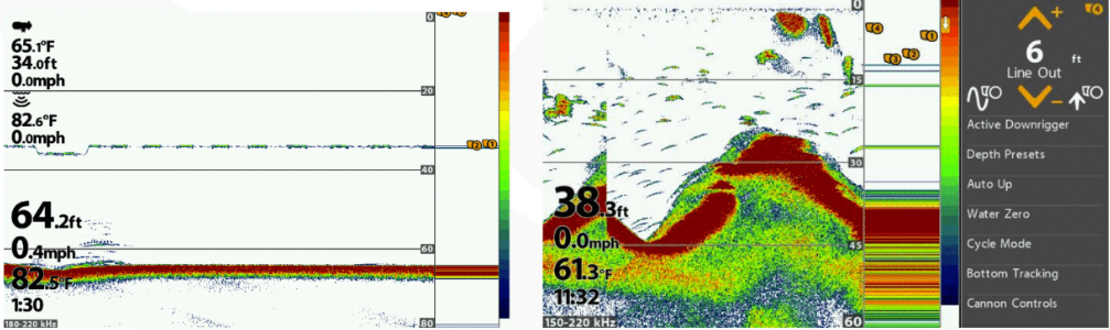 - Display downrigger and Fish Hawk™ information in data boxes and overlays