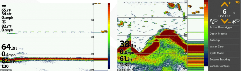 - Display downrigger and Fish Hawk™ information in data boxes and overlays