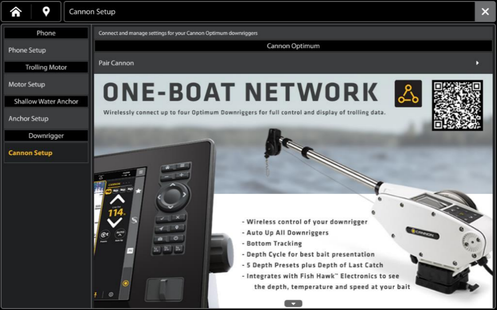 • Users can now seamlessly pair, connect, and control Cannon Optimum downriggers directly from the One Boat Network tool. This integration allows full access to all Optimum settings, streamlining the setup and control process.