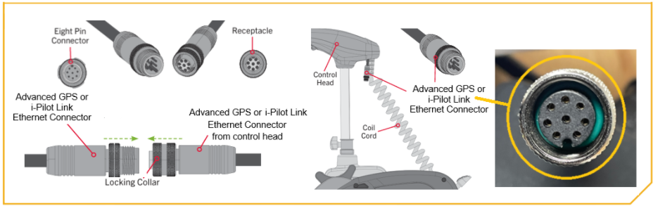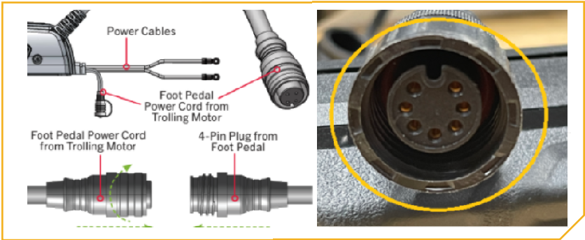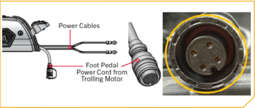 Note: Using the wrong cable connection, adapter, or extension cable can cause equipment damage and result in the loss of essential trolling motor functions.