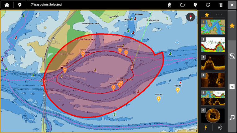- Use "Draw to Select" on the Chart View to lasso waypoints for export, transfer, grouping, or editing.