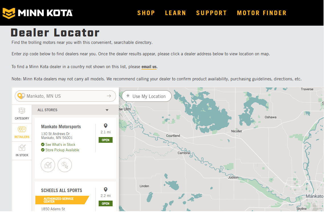 Click here to access Minn Kota Dealer Locator