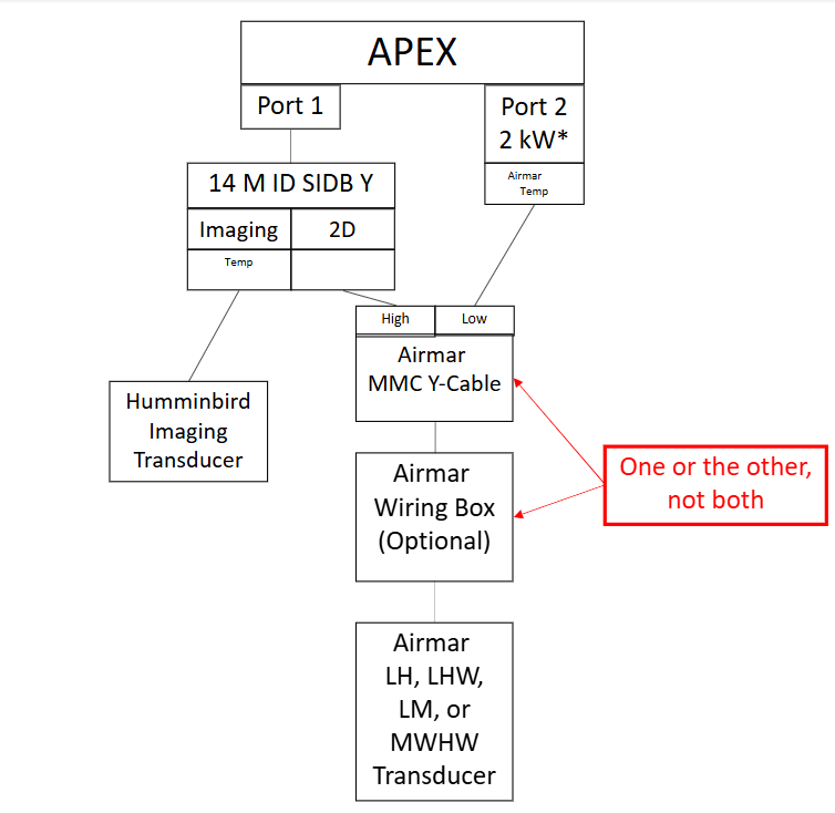 For anglers and marine professionals using an Airmar transducer with a Humminbird APEX unit, it's possible to split the transducer’s high and low frequency beams across two ports for optimized sonar performance. This setup allows you to take full advantage of both Airmar and Humminbird technologies, including high-resolution 2D sonar, Down Imaging (DI), and Side Imaging (SI).